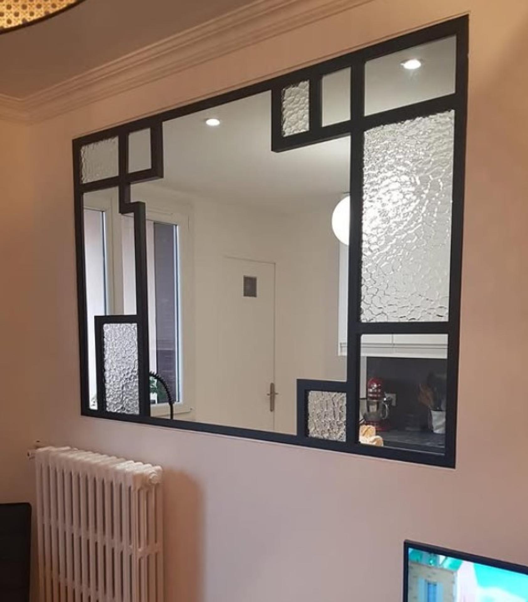 Création d'une verrière métal sur mesure à Brignais, proche de Lyon, séparant cuisine et salon. Design haut de gamme et lumineux, intégrant des verres transparents et texturés pour une esthétique unique. Contactez Metalex à Brignais pour un devis gratuit.